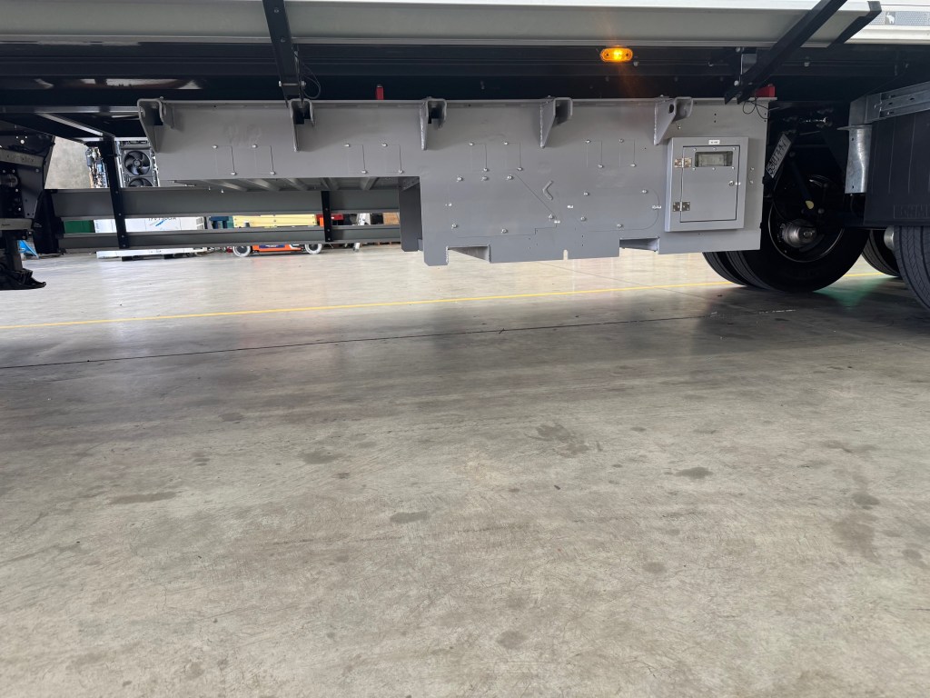 The trailer was manufactured by Schmitz Cargobull and is fitted with e-axle hardware provided by European company SolarEdge, and adapted to running gear by TMC Australia